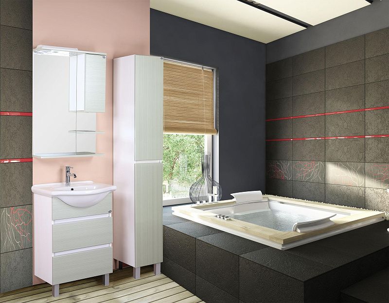 Корпус шкафа-зеркала выполнен из ЛДСП, фасад - из МДФ в пленке, устойчивых к механическим воздействиям, перепадам температур и высокой влажности.
