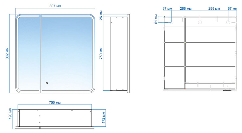 Двухстворчатый шкаф выполненный в стиле минимализм. Изделие оснащено сенсорным выключателем с функцией плавного диммирования, с запоминанием последнего значения.