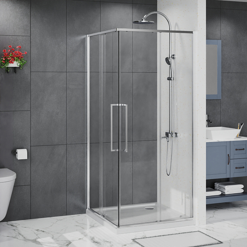 Душевой Уголок Квадратный, ВХОД С УГЛА, с двумя
