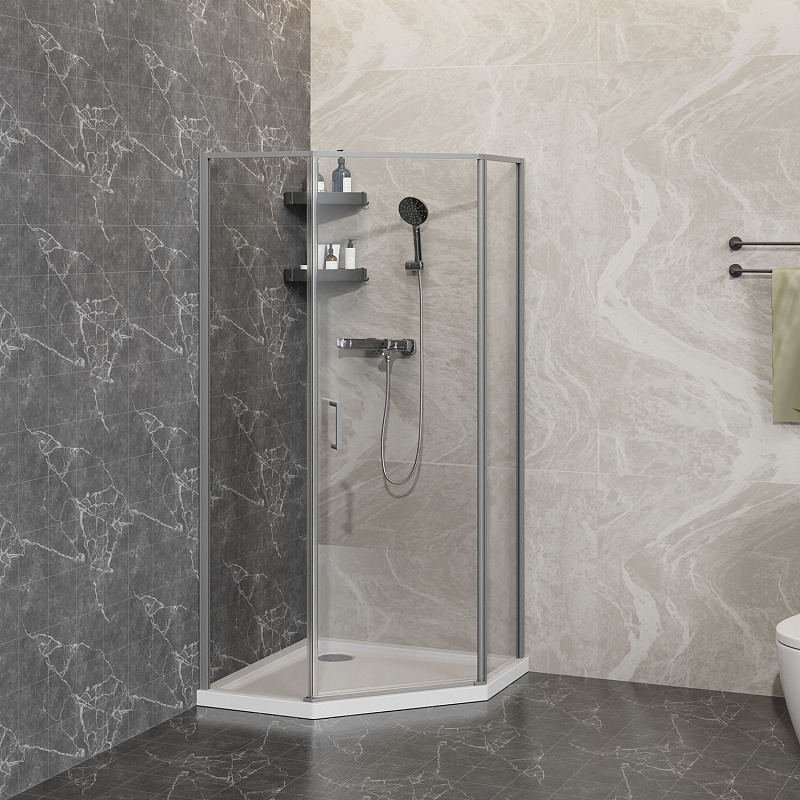 Пятиугольный душевой уголок, с универсальной распашной