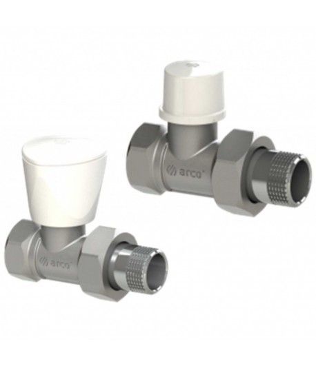 Радиаторный набор 2 крана ARCO, прямые - латунь хромированная, 1/2" (KCM13)