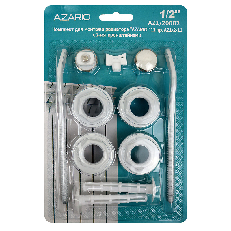 Комплект для монтажа радиатора AZARIO 1/2", с 2-мя кронштейнами, белый (AZ1/20002)