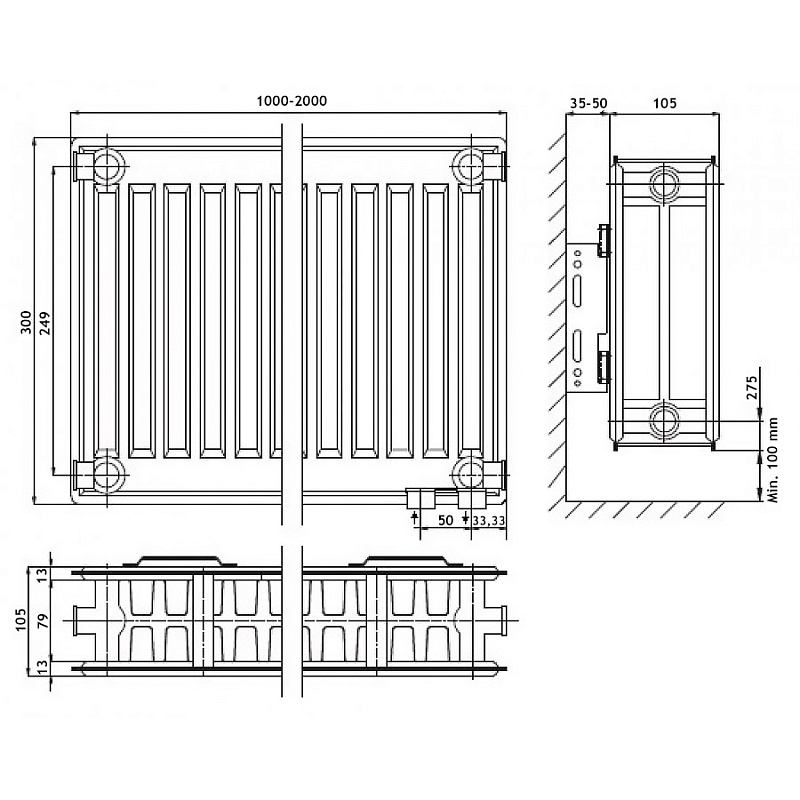 Радиаторы состоят из тепловых панелей с дополнительными теплоотводящими поверхностями и оснащаются верхними декоративными решетками с боковыми крышками. Панели радиаторов сварные, состоят из двух листов высококачественной холоднокатанной стали, толщиной 1,15 мм.