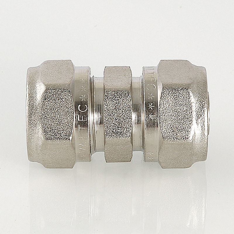 Прямой латунный никелированный фитинг для соединения металлополимерных труб. Имеются равнопроходные модели и модели с переходом на другой диаметр.