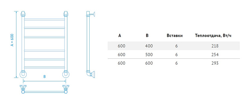 Полотенцесушитель водяной Маргроид Лесенка "Вид 10" без полки 60х50 (комплект), хром