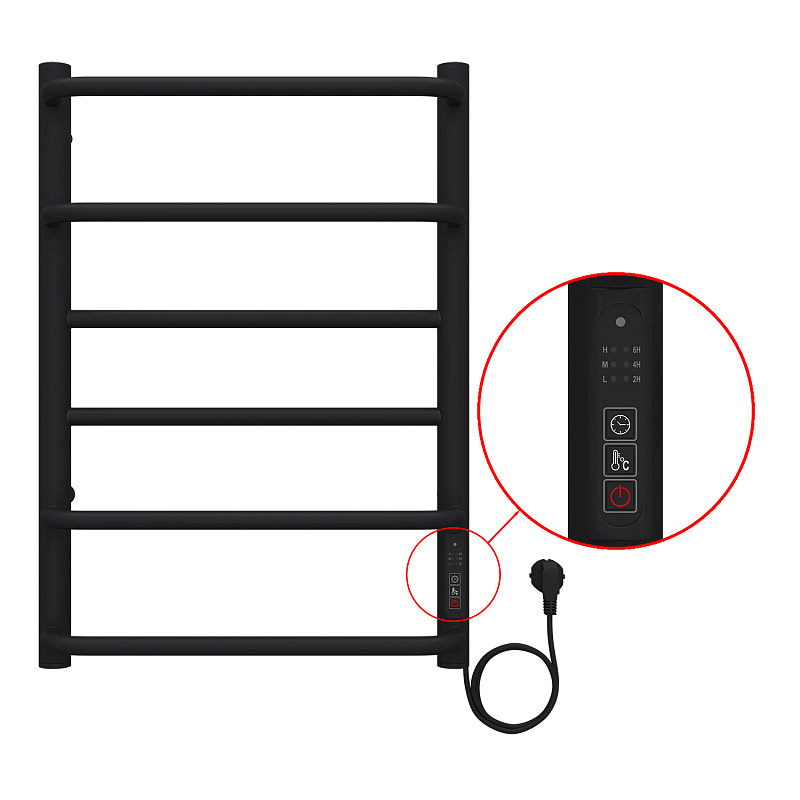 Полотенцесушитель электрический AZARIO MILAN 400/600 6 секций, диммер справа, черный (AZ90846B)