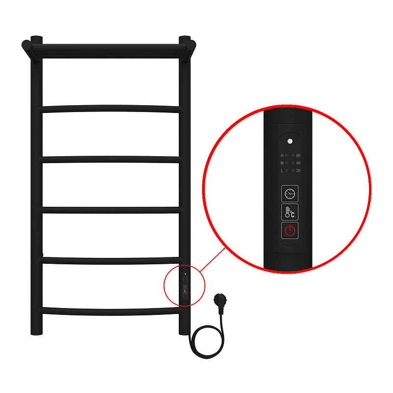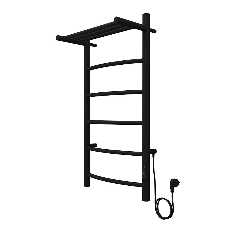 Полотенцесушитель электрический AZARIO VERONA 400/800 5 секций, с полкой, диммер справа, черный (AZ04848PB)