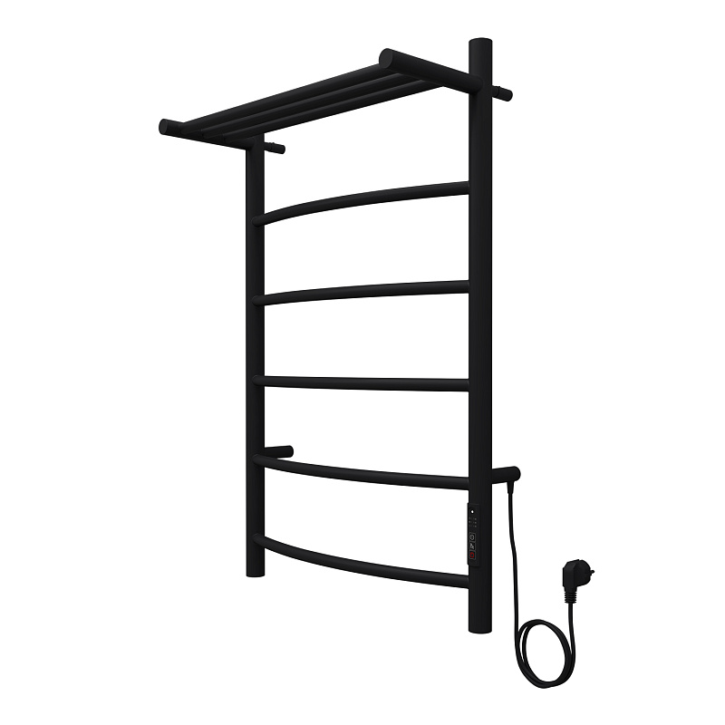 Полотенцесушитель электрический AZARIO VERONA 500/800 5 секций, с полкой, диммер справа, черный (AZ04858PB)