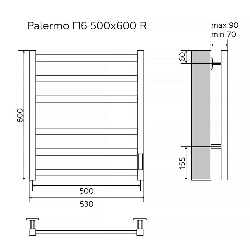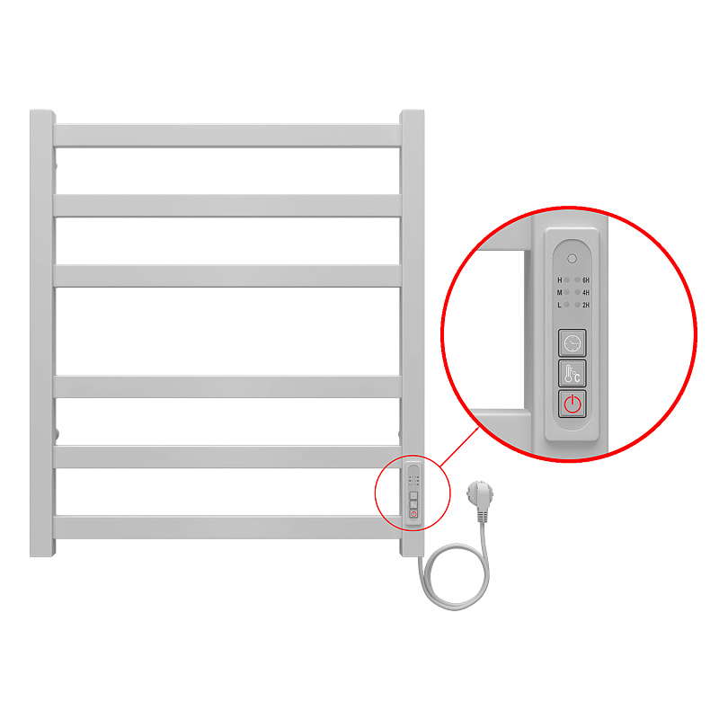 Полотенцесушитель электрический AZARIO PALERMO 500/600 квадрат, 6 секций, диммер справа, белый (AZ83856W)