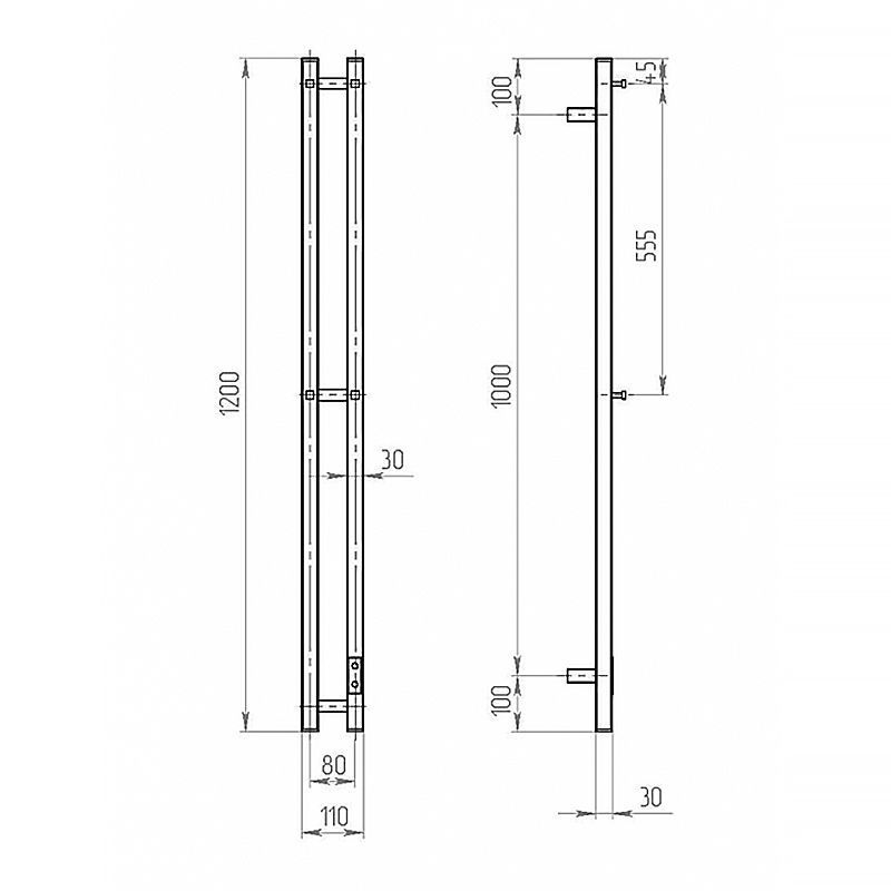 —Полотенцесушитель электр. Двин X neo 10х120, Черный матовый
