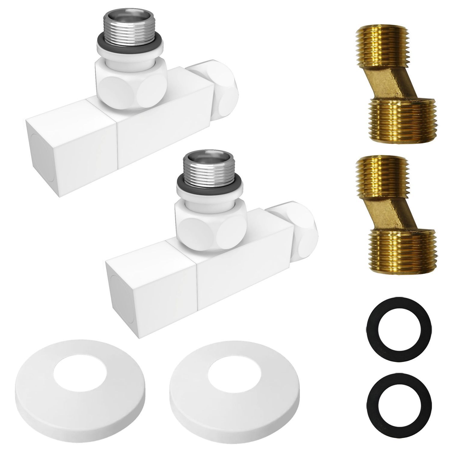 —Соединение угловое с квадратным вентилем для полотенцесушителей Azario гайка-штуцер 3/4"х1/2", белый (AZ83853FW)