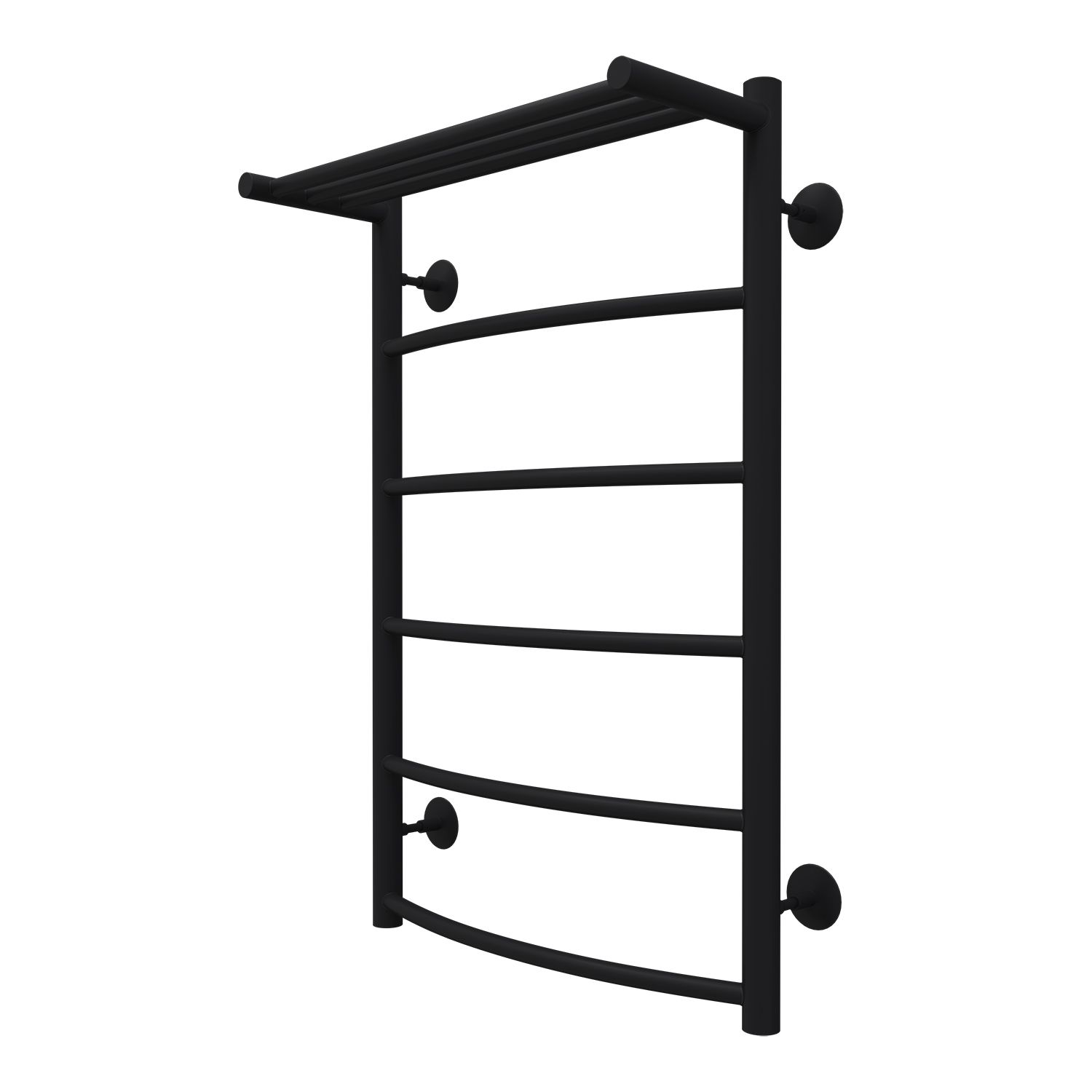 Полотенцесушитель водяной AZARIO VERONA 500/800 с полкой, 5 секций, нижнее/диагональное подключение, 1/2", черный (AZ83863PB)