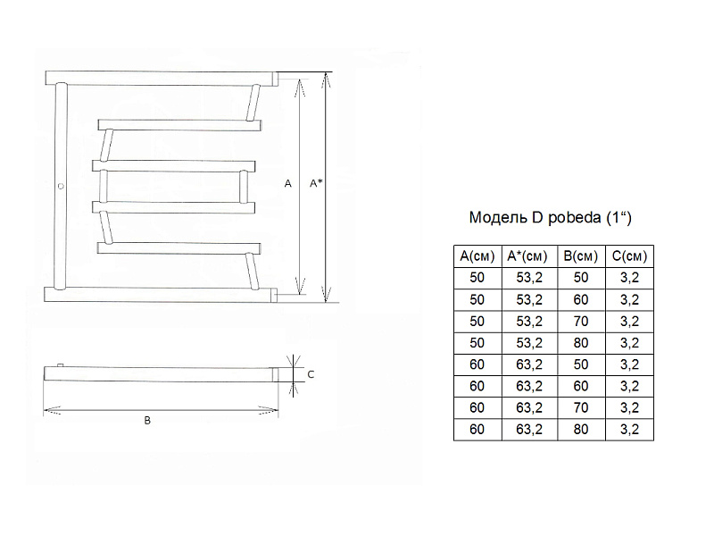 Полотенцесушитель водяной ДВИН D "Pobeda" лесенка 50/50, полированный (4627106963723)