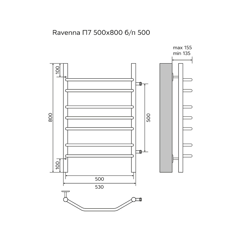 Полотенцесушитель водяной AZARIO RAVENNA 500/800 7 секций, боковое подключение, 1", хром (AZ07558)