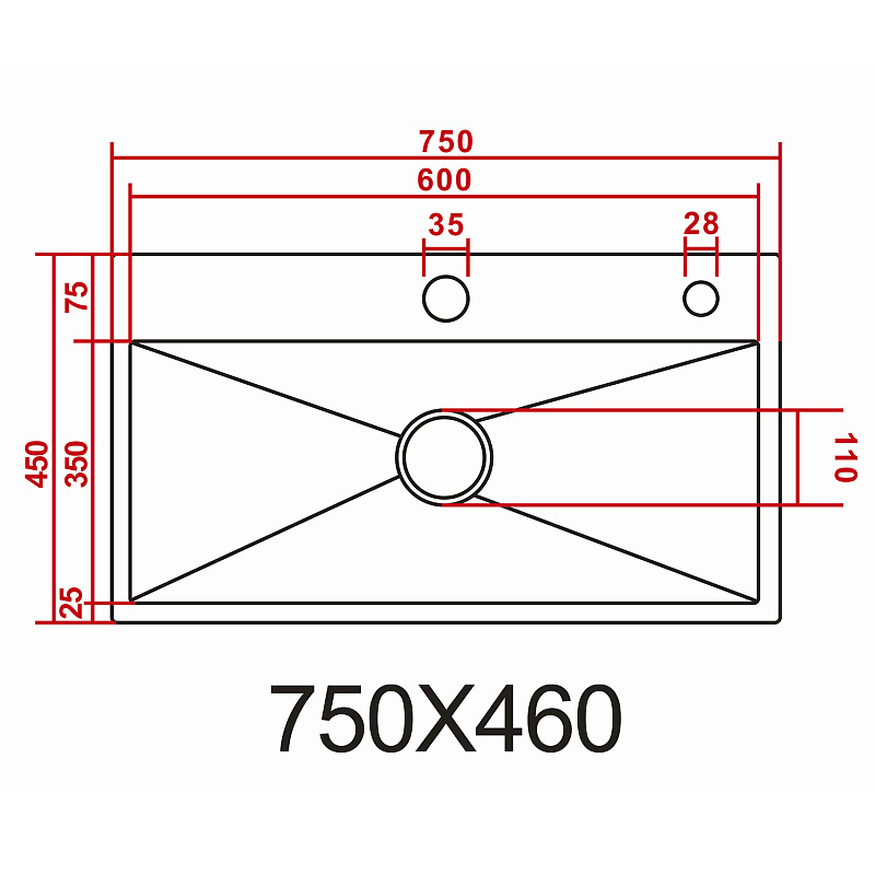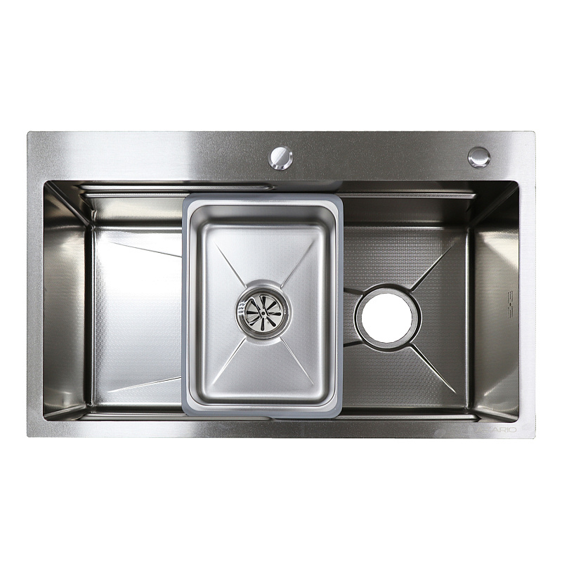 —Кухонная мойка AZARIO NAOMI (750*460*220) нержавеющая сталь серебро соты (сифон, корзина, доска) (AZS7546H)