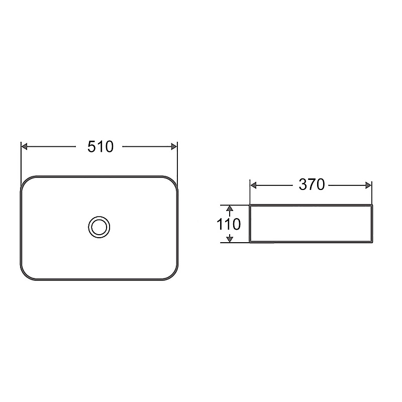 Раковина накладная Azario 510х370х110 прямоугольная, белый глянец (AZ-78570B)