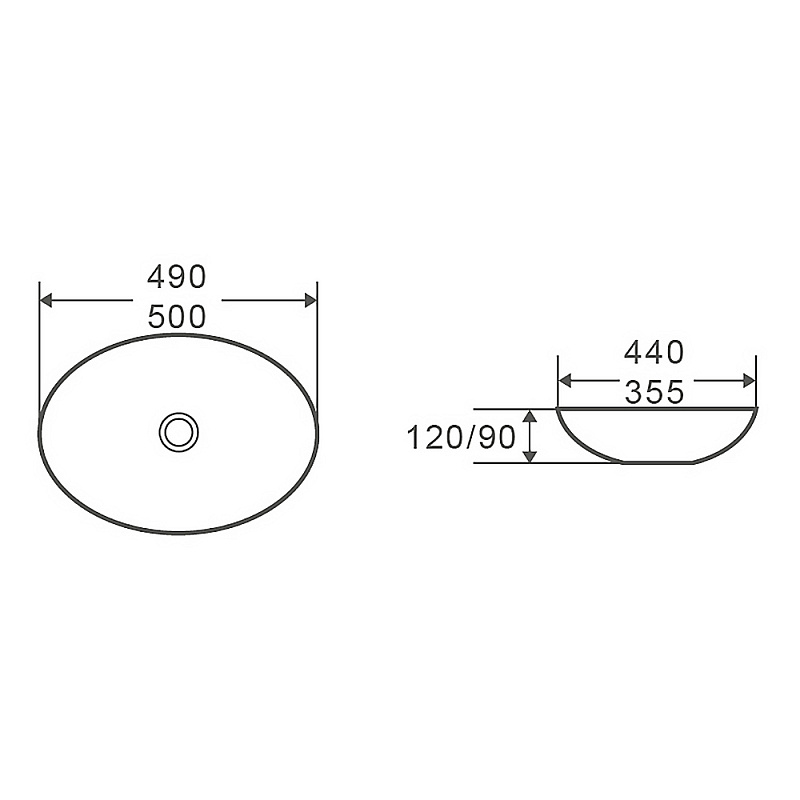 —Раковина накладная Azario 500х355х90 санфаянс, белый глянец (AZ-1025-S)
