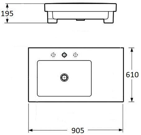 Раковина Onika 90 встраиваемая, крыло справа, белая (609001)