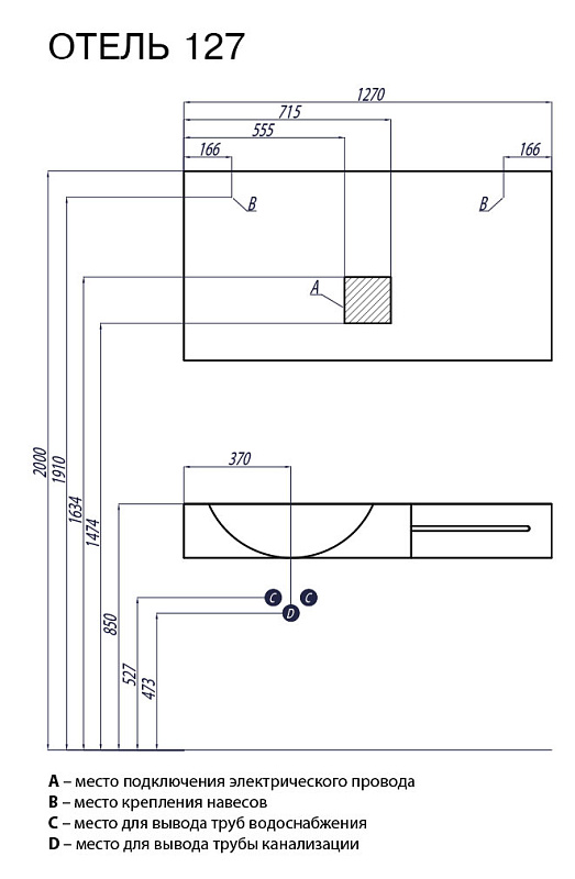 Раковина - столешница AQUATON Отель1270, белая (1A70113WOT01L)
