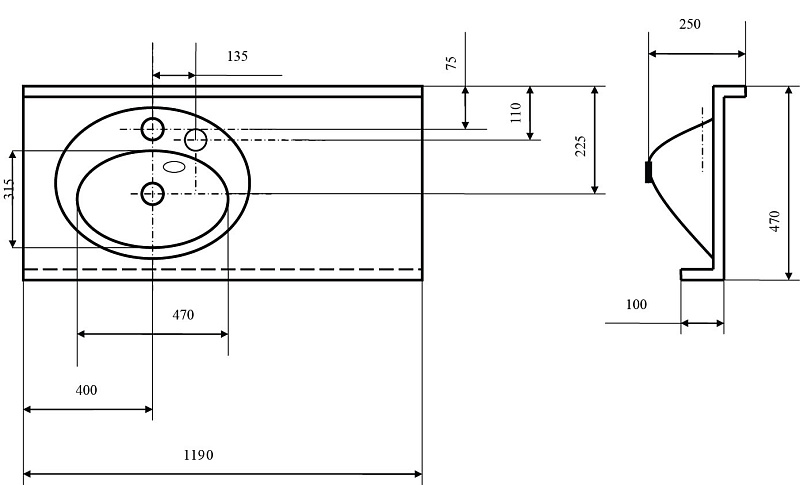 Готовых отверстий для смесителя