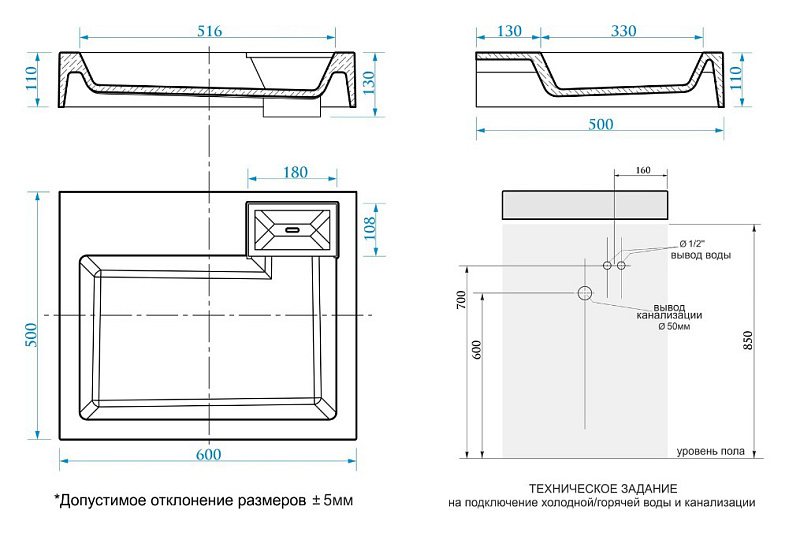 Размер: 600х500х110 мм