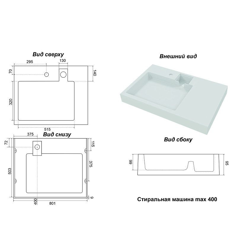 Возможна установка над стир. машиной