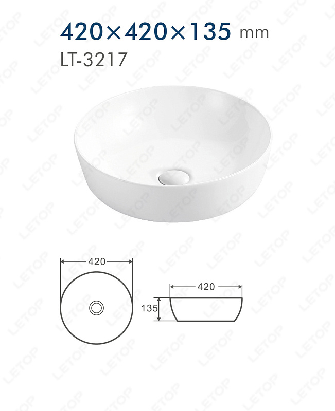 —Раковина-чаша Azario 355x355x150 накладная, круглая, белый глянец (AZ-3217)