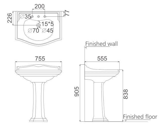 —Раковина Creo Ceramique DIJON 750х550х905, с пьедесталом, белая