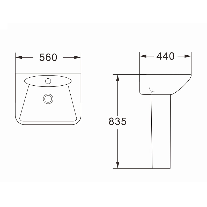 Раковина с пьедесталом AZARIO ELANA 560х440х835 (AZ-334P)