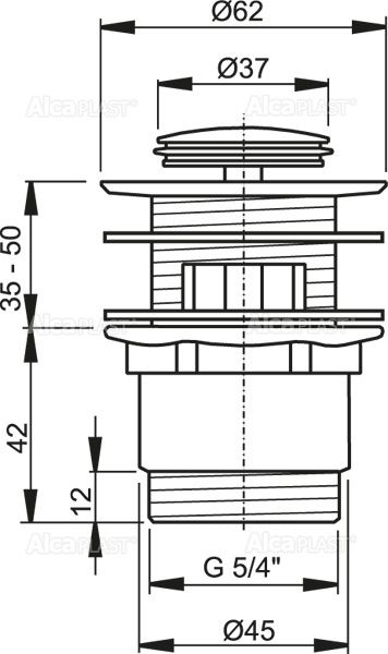 Водослив для умывальника click/clack 5/4", цельнометаллический с малой заглушкой