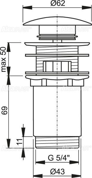 —Донный клапан для раковины Alcadrain clik/clack 5/4, с переливом, хром (A390)