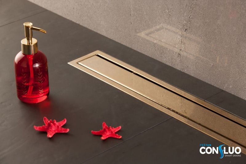—Душевой лоток Pestan Confluo Premium Line 550, 55*12 см, с рамкой, золото (13100052)