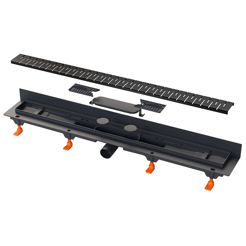 —Душевой лоток AZARIO D40 Medium 750 мм, боковой слив, пластиковый, перфорированная решетка, черный (AZ-CH 750 MC)