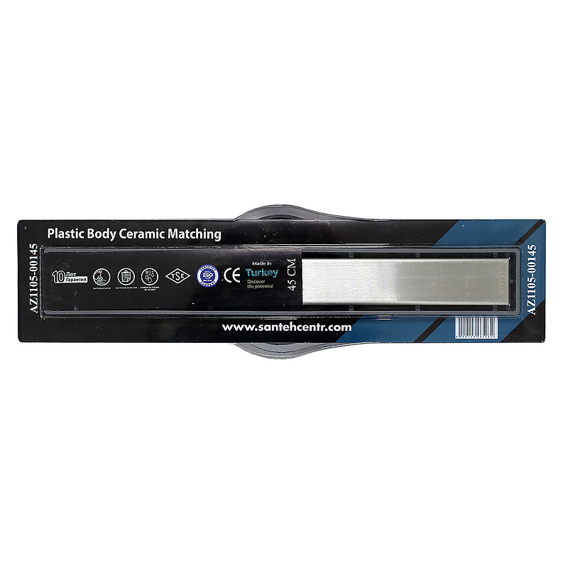 —Душевой лоток AZARIO 450 мм с решеткой под плитку (двухсторонняя решетка), выход 50мм, хром матовый (AZ1105-00145)