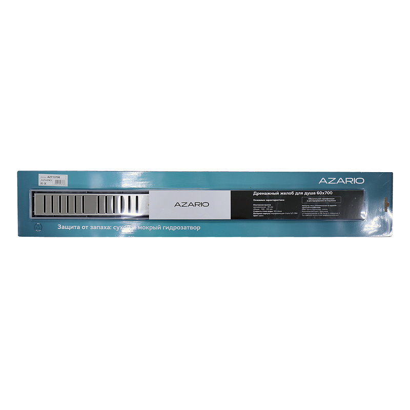 Душевой желоб AZARIO  700 мм сухой/мокрый гидрозатвор с горизонтальным выходом D40 (переходник D50), поворотным сифоном из ABS пластика и  решеткой - идеальное решение для эффективного сбора, и отведения жидкости в канализацию с поверхности пола. Они предназначены для монтажа в ванных комнатах, душевых, санузлах квартир, загородных домов и общественных местах.