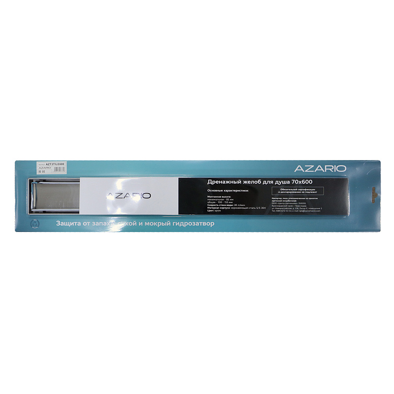 Душевой желоб AZARIO  600 мм под плитку сухой/мокрый гидрозатвор с горизонтальным выходом D40 (переходник D50), поворотным сифоном из ABS пластика  - идеальное решение для эффективного сбора, и отведения жидкости в канализацию с поверхности пола. Они предназначены для монтажа в ванных комнатах, душевых, санузлах квартир, загородных домов и общественных местах.