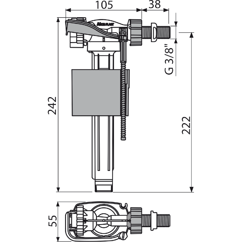 —A150-3/8" Впускной механизм с боковой подводкой для керамических бачков