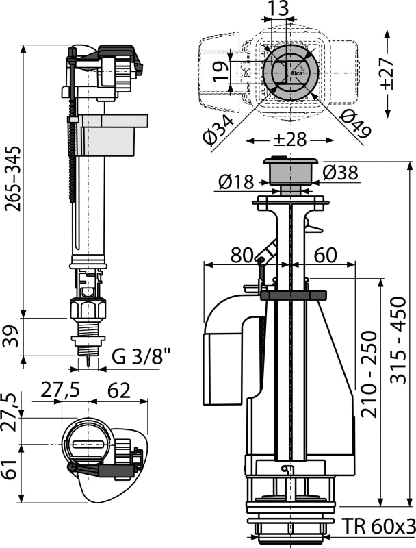 Конструкция позволяет регулировать высоту механизма в зависимости от высоты бачка