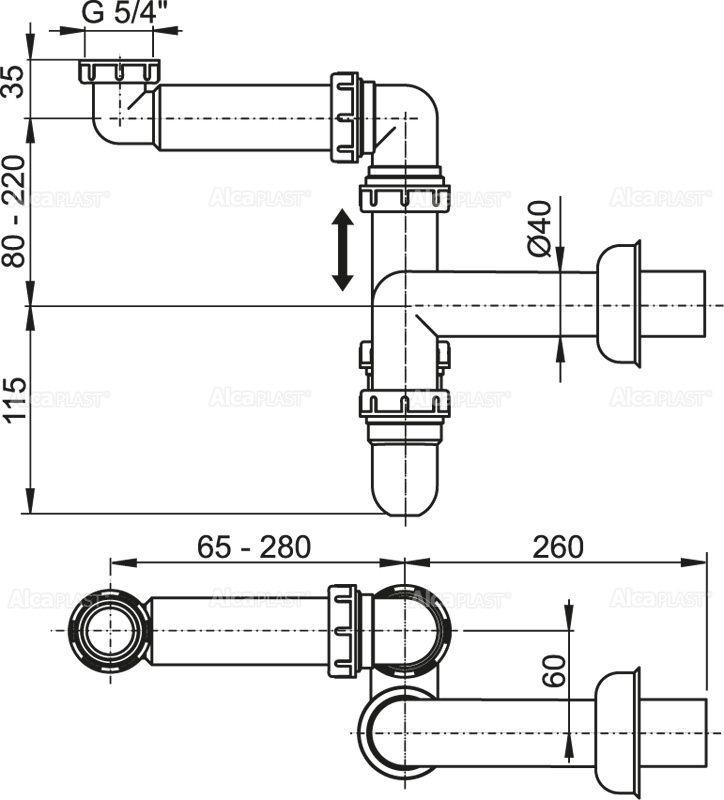 Cифон для раковины Alcadrain экономящий пространство с накидной гайкой 5/4" (A434)