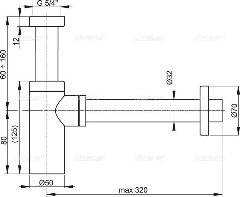 — Сифон для раковины Alcadrain DESIGN 32 мм, цельнометаллический, хром (A400)