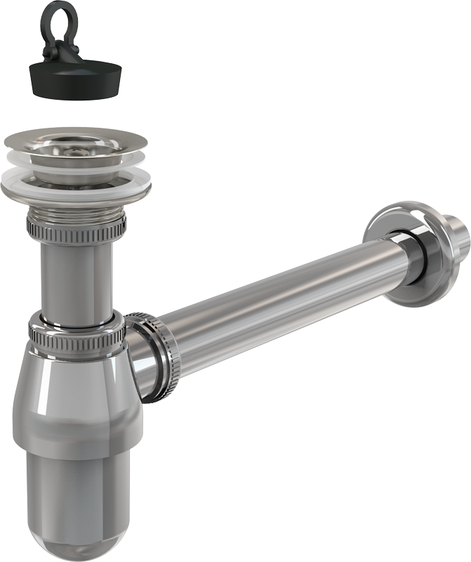 Комплект цельнометаллического сифона и сливного клапана раковины