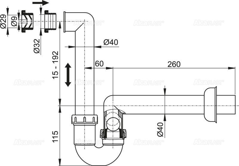 —Сифон для сбора конденсата Alcadrain DN40 (AKS2)