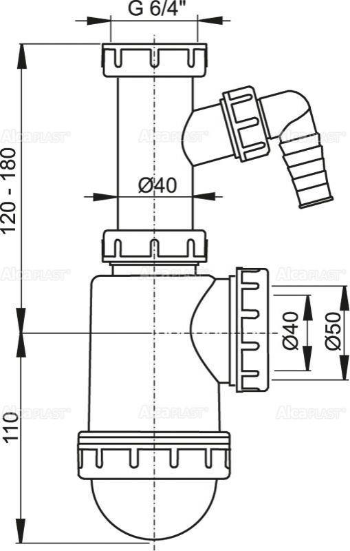 СИФОН ДЛЯ МОЙКИ С НАКИДНОЙ ГАЙКОЙ 6/4" И ШТУЦЕРОМ