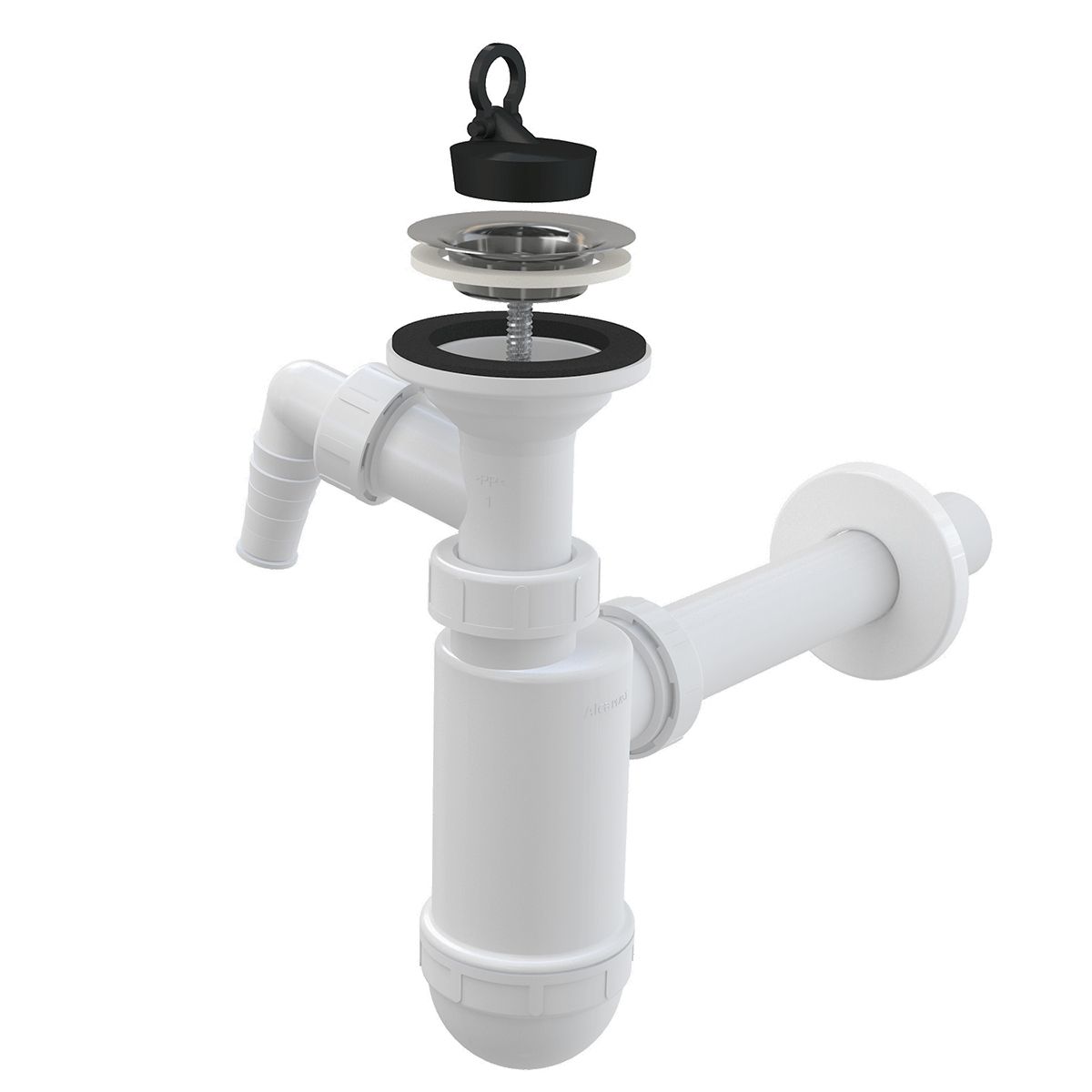 —Сифон для раковины Alcadrain DN32 со штуцером и нержавеющей peшeткой DN63 (A410P)