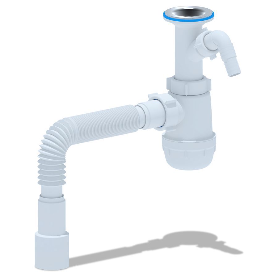 • Сифон сливной АНИ пласт А2015 для кухонных моек с диаметром сливного отверстия 50-60 мм, с литым выпуском и отводом для подключения бытовой техники