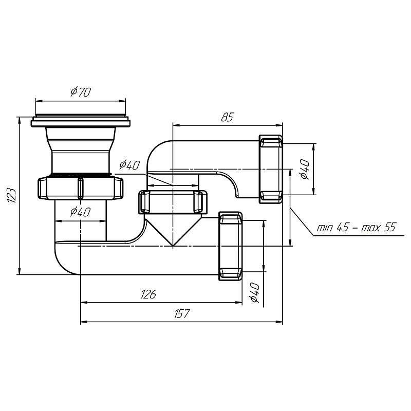 • Высота гидрозатвора: 57 мм