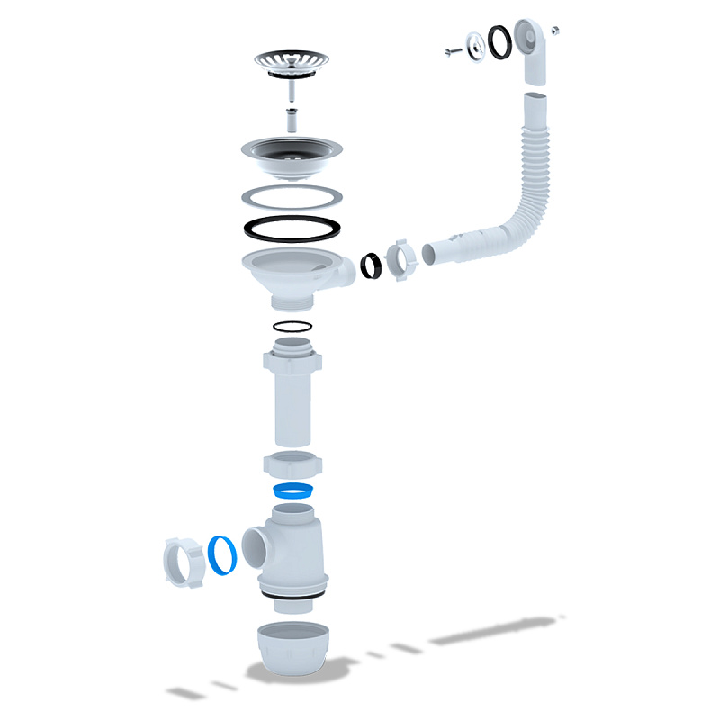 Форма сифона позволяет поддерживать хорошую пропускную способность слива сточной воды, выполняя свою главную функцию - формирование гидрозатвора для отсечения неприятных запахов из канализации. Конструкция позволяет легко, без демонтажа, снять отстойник (стакан) и почистить сифон в случае засорения, достать случайно упавшие в слив раковины мелкие ценные вещи. Сифон прост в установке.