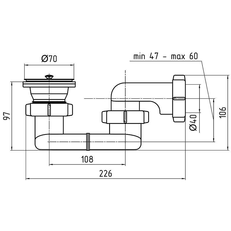 Сифон для душевого поддона. Выход для подключения к канализации 40мм