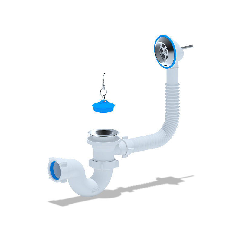 • Для ванн с отверстием слива Ø50 мм и отверстием перелива от Ø 36 до 63 мм (стандартное отверстие 50 мм)