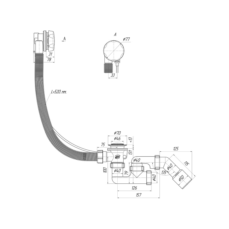 Обвязка полуавтомат для ванны АНИ Пласт EM421 применяется для организации слива воды в систему канализации в ванне, а также ее заполнения. Представляет собой полуавтоматическую конструкцию, которая закрывает сливное отверстие в ванне, а также отверстие для перелива. Закрытие и открытие сливного отверстия происходит с помощью вращающейся крышки из нержавеющей стали диаметром 77 мм на отверстии перелива. Длина гофрированной трубы перелива 580 мм. Пробка обвязки для ванны из нержавеющей стали диаметром 43 мм. Обвязка изготовлена из пропилена, сифон регулируемый с жесткой трубой.